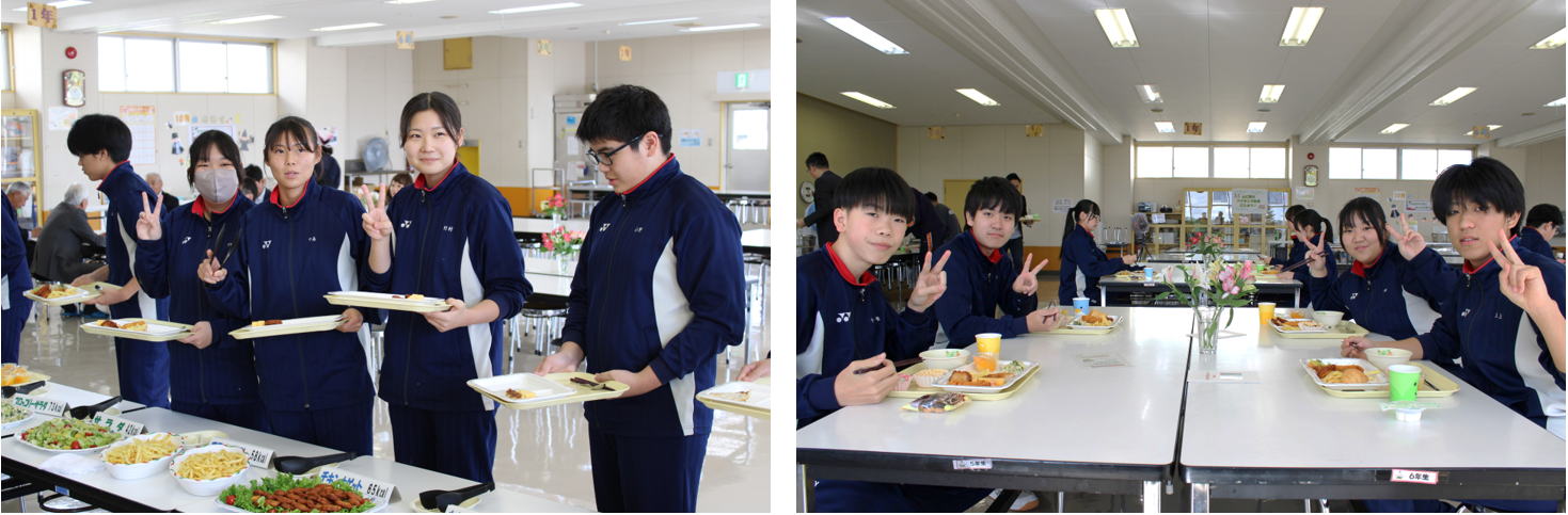 | 3年生が食育の一環としてバイキング給食を行いました。栄養教諭からカロリー等についてのお話を聞き、バランスよくたくさん食べることができました。日ごろから給食を作っていただいている方々への感謝の気持ちを、これからもぜひ持ち続けてほしいと思います。 |