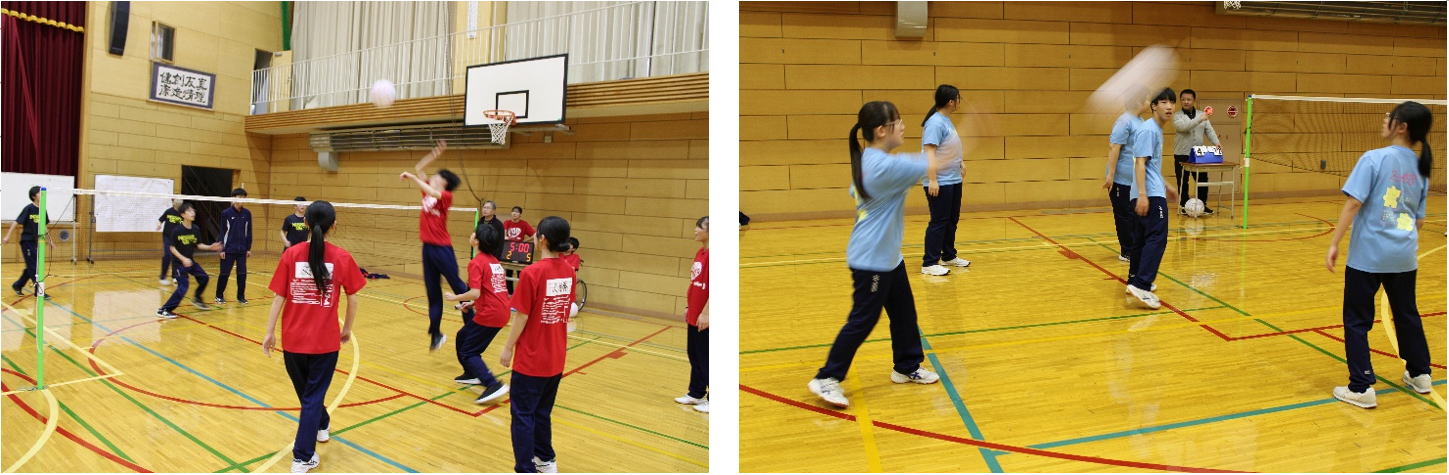 | 1学年PTA主催のスポーツレクが行われました。ミニバレーとモルックで大いに盛り上がり、楽しいひと時を過ごすことができました。ご協力いただいた皆様、大変ありがとうございました。 |