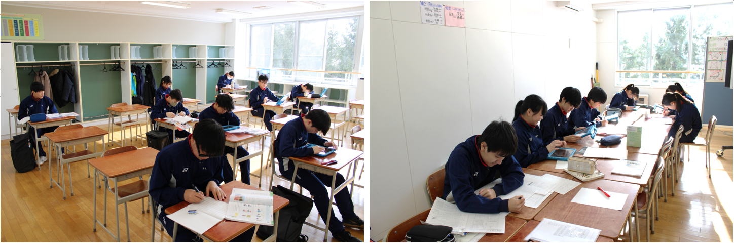 | 今年度初めての定期テストが始まりました。特に1年生は初めての定期テストに緊張しながらも、真剣に取り組んでいる様子が見られました。これまでの学習の成果が発揮できることを期待しています。 |